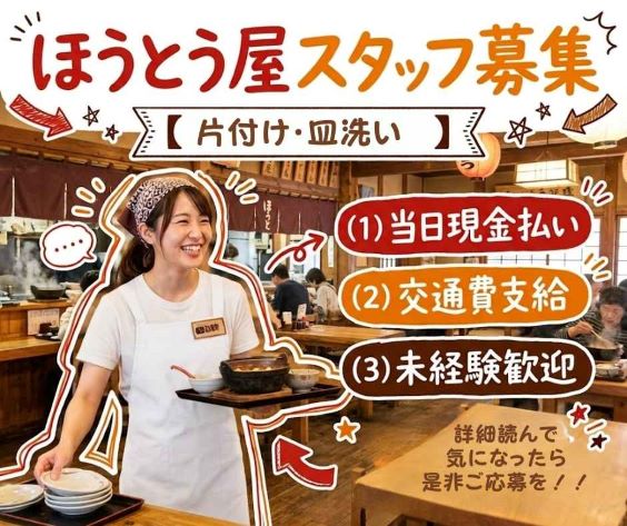 $【時給1250円】ほうとう屋さんでのホールのお仕事