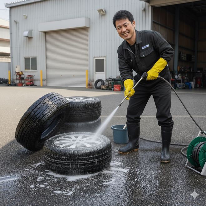 ・長野市若穂綿内!タイヤの洗浄・拭き上げ業務