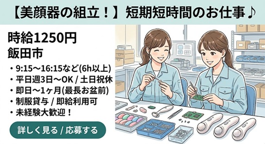 飯田市のフリーター歓迎のバイト・アルバイト求人情報