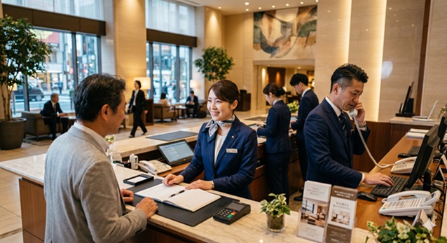 ☆ホテルのフロントでチェックイン・アウト等の接客や電話対応