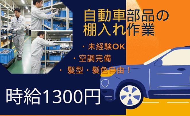 《時給1,300円》日勤固定♪自動車部品の棚入れ作業♪