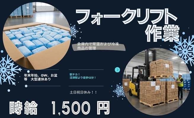 沼津駅から徒歩12分♪保冷剤を作る会社でのリフト作業