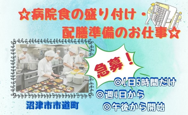 【沼津市】≪時短≫≪週4〇≫≪未経験〇≫病院食配膳準備