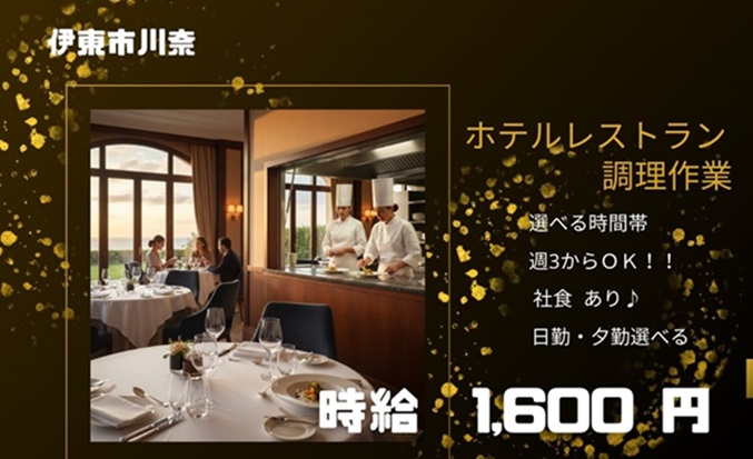 【伊東市】時給1,600円!憧れの四つ星ホテルで調理補助
