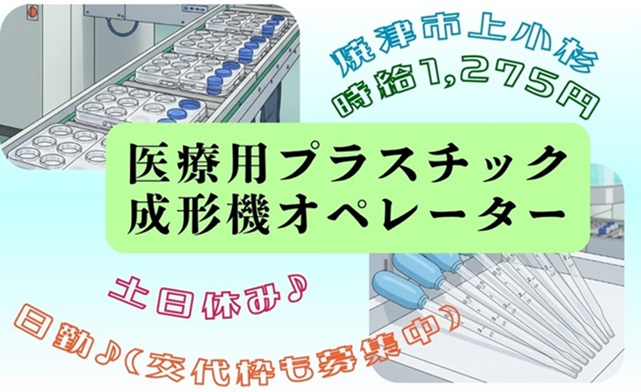 【焼津市】座り仕事♪未経験歓迎!! 医療用プラスチックの検品