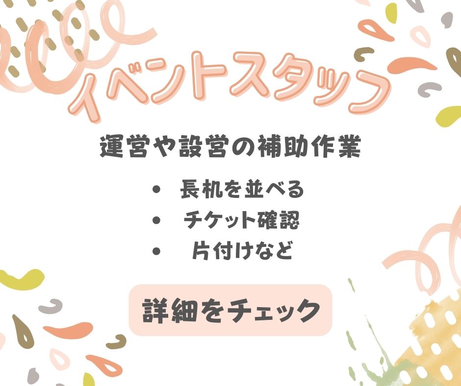 イベントでの運営や設営の補助作業!