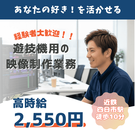 【四日市】映像制作経験歓迎!遊技機用の映像制作業務★