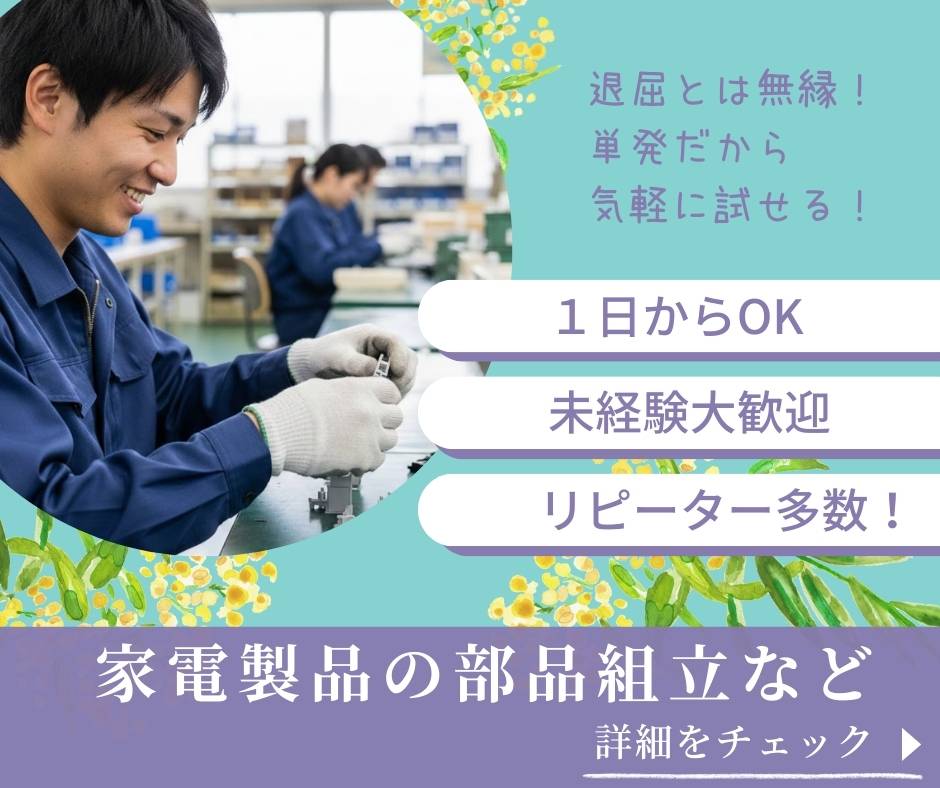 $直行枠【時給1,100】家電製品の組立【即払あり】