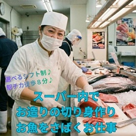 スーパーでお魚の切り身を作ったり、さばくのがメインのお仕事です!