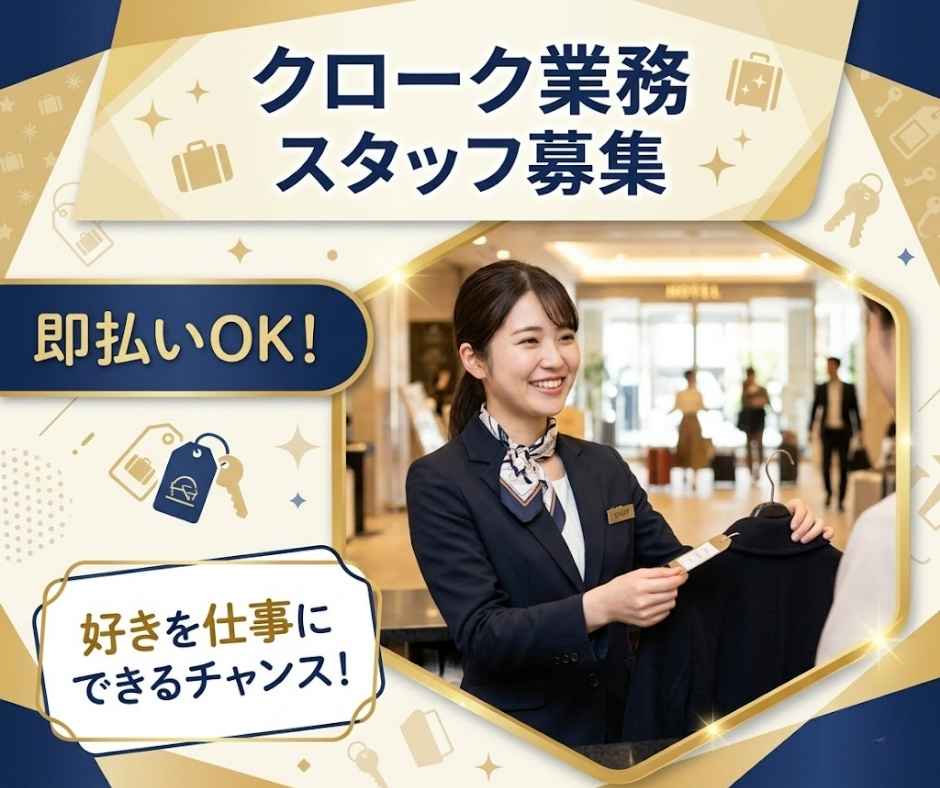 【即払可】時給1150交300/ホテル内でのクローク業務♪