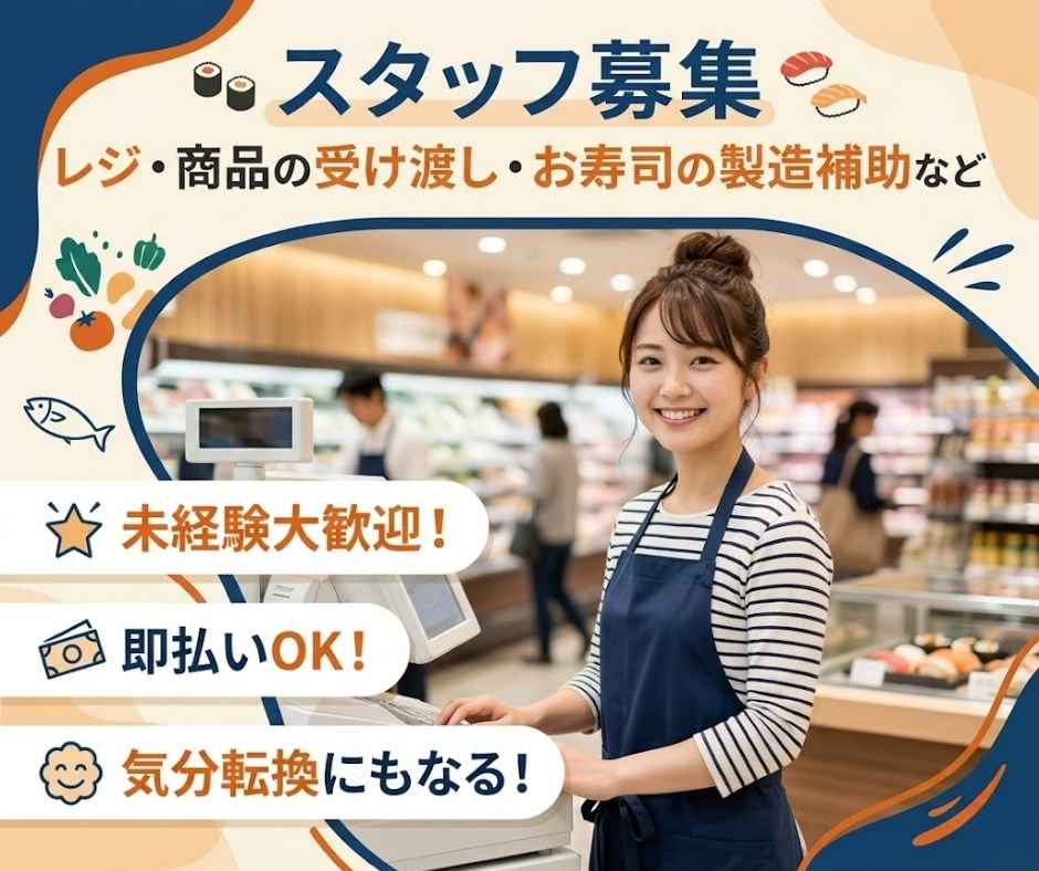 高時給1500円☆彡レジやお寿司の製造補助♪