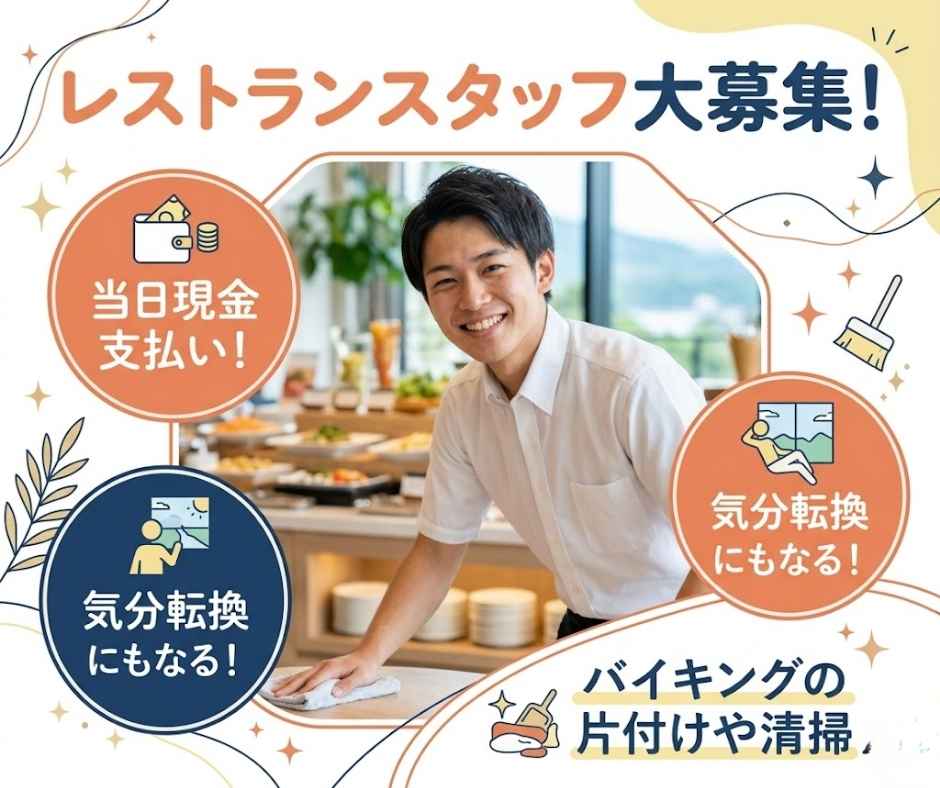 $当日支払【時1200円】バイキングの片付けや清掃