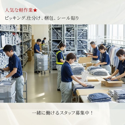 ピッキング、仕分け、梱包、箱詰め、シール貼りなどの人気な軽作業です!!