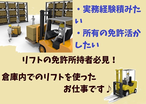 時給1500円!土日祝休み!リーチリフト作業(^^♪
