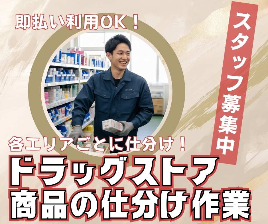 時1200円+交通費支給!簡単ドラックストア商品仕分