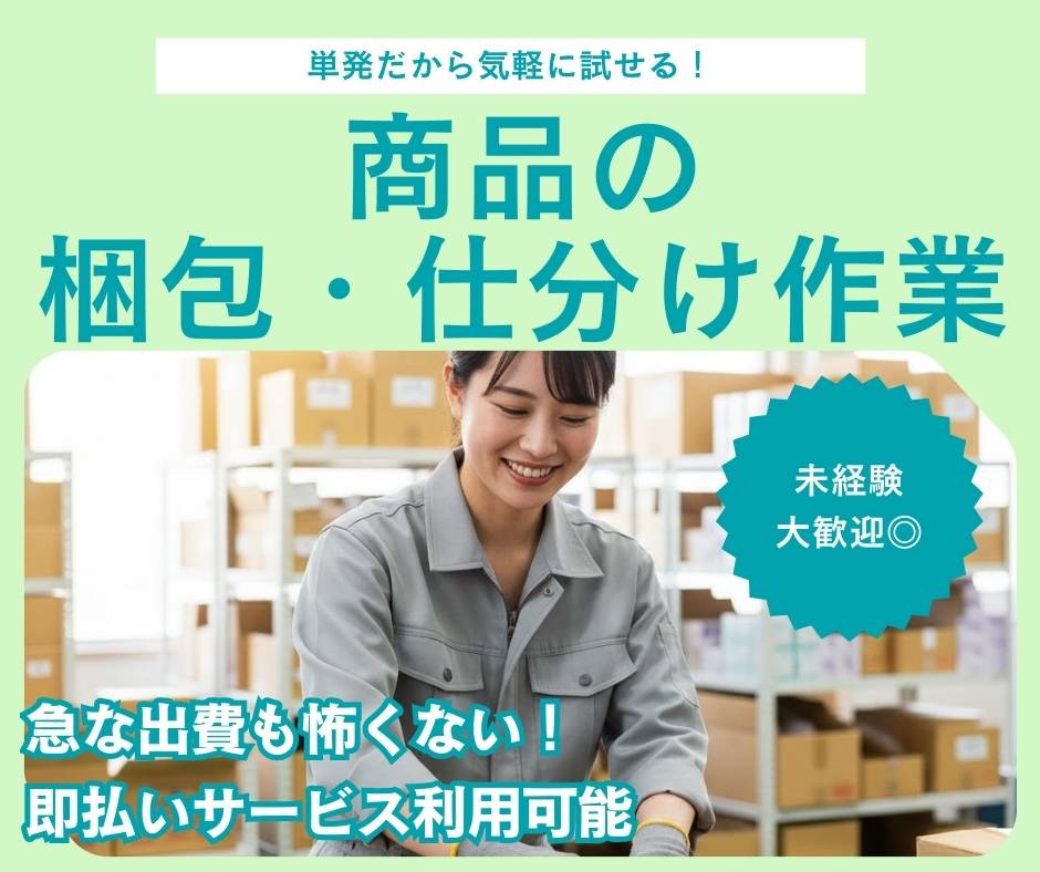 $◇初めてのバイトにピッタリ!梱包、仕分けスタッフ募集