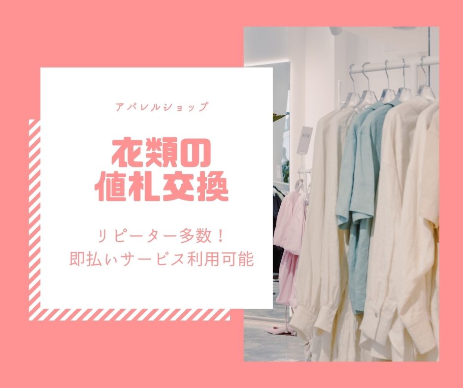 即払OK!時1350円+交/有名アパレル店で簡単衣類の値札交換♪