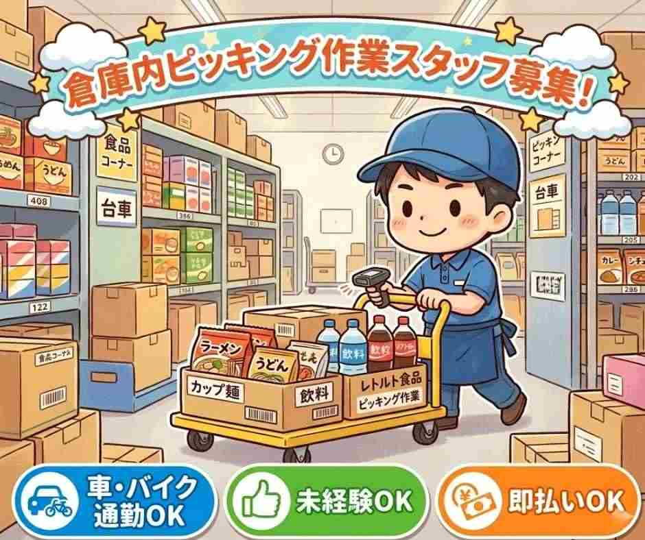 即払可【車・バイクOK】時1200円♪食品のピッキング作業♪
