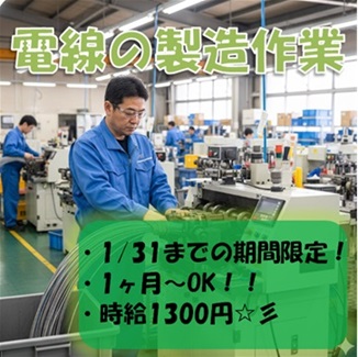 1ヶ月~OK☆彡時給1300円!電線の製造作業