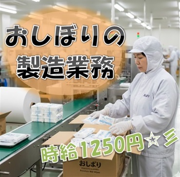 【作業内容】ウエットティッシュなどの家庭日用品の製造、生産に伴う機械操作、製品の...