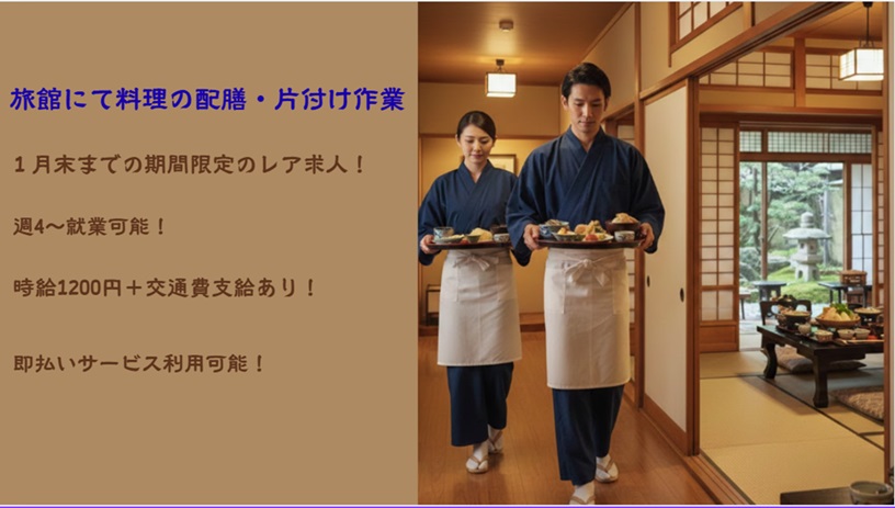 【1月末まで】朝の短時間♪旅館で料理の配膳・片付け作業