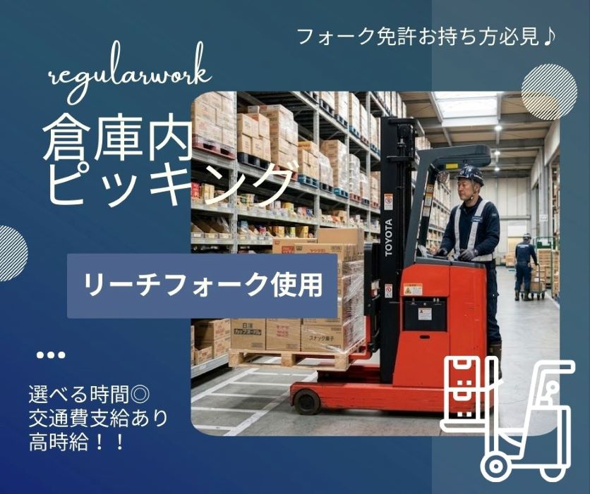 リーチフォーク経験者さん!『倉庫内ピッキング』★稼げる