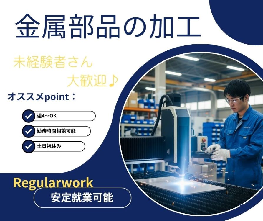 未経験OK★『金属部品レーザー加工』週4~OK/土日祝休