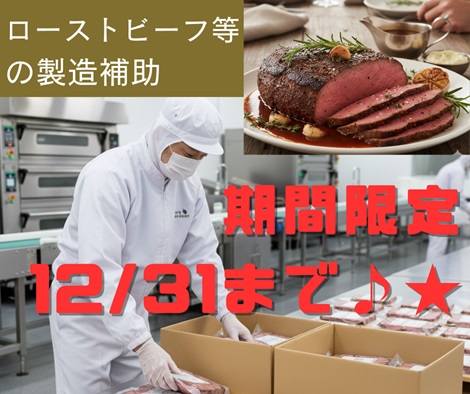 期間限定のチャンス!ローストビーフ等の製造補助スタッフ