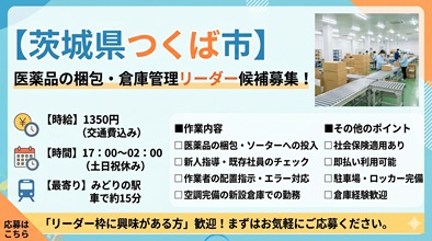 ~つくば市稲岡!未経験歓迎の倉庫内軽作業!~