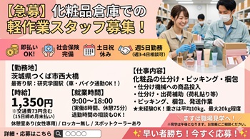 つくば市の仕分/ピッキング/梱包のバイト・アルバイト求人情報