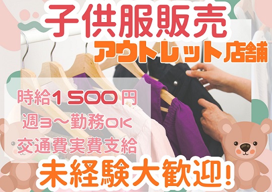 【アウトレット】時給1500円!週3~◇子供服販売◇未経験大歓迎