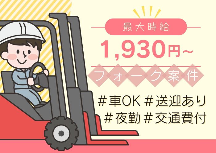 オープニング♪【高時給フォーク】車通勤ok・手元作業無し