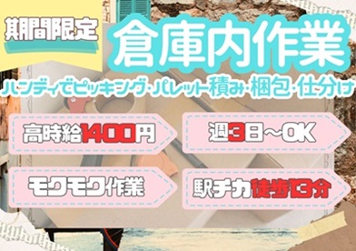 【期間限定4月まで】時給1400円!倉庫内軽作業【駅チカ】