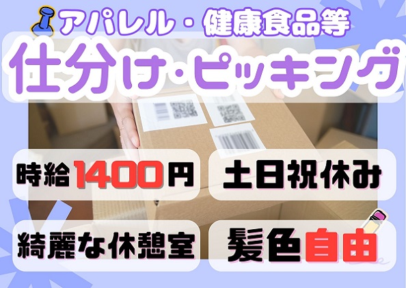 時給1400円!倉庫内で仕分け・ピッキング作業 髪色自由♪