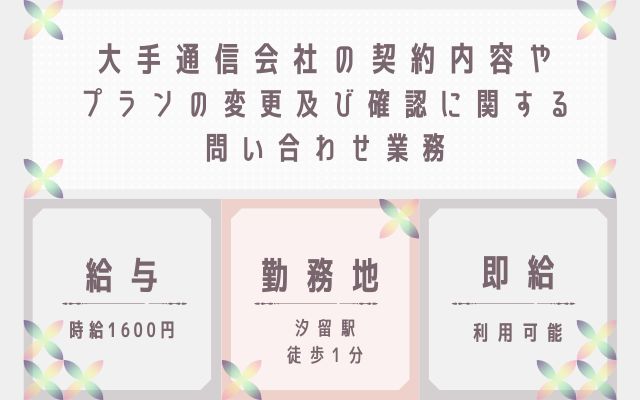 新着☆大手通信会社の契約やプランの変更・確認業務をご紹介!