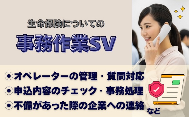 【高時給1900円+交通費】生命保険バックオフィスSV☆彡