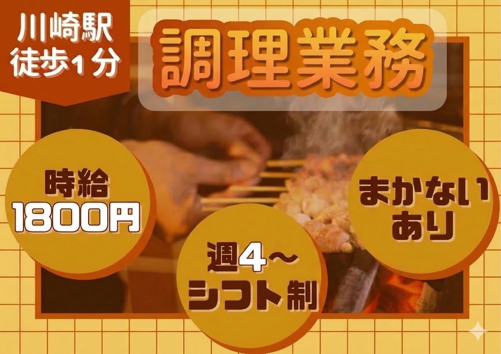 【川崎駅徒歩1分】時給1800円/調理◇週4~【まかない有】