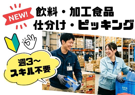 週3日OK!!時給1500円!酒類・食品の仕分、検品、箱詰め