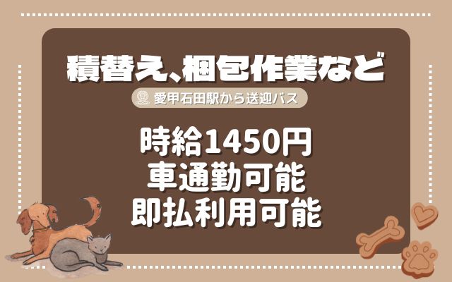 【平塚】時給1450円送迎バス有ペットフード倉庫での作業