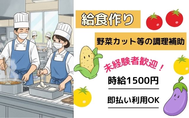 【厚木】未経験者歓迎♪時給1500円*給食作りのお仕事