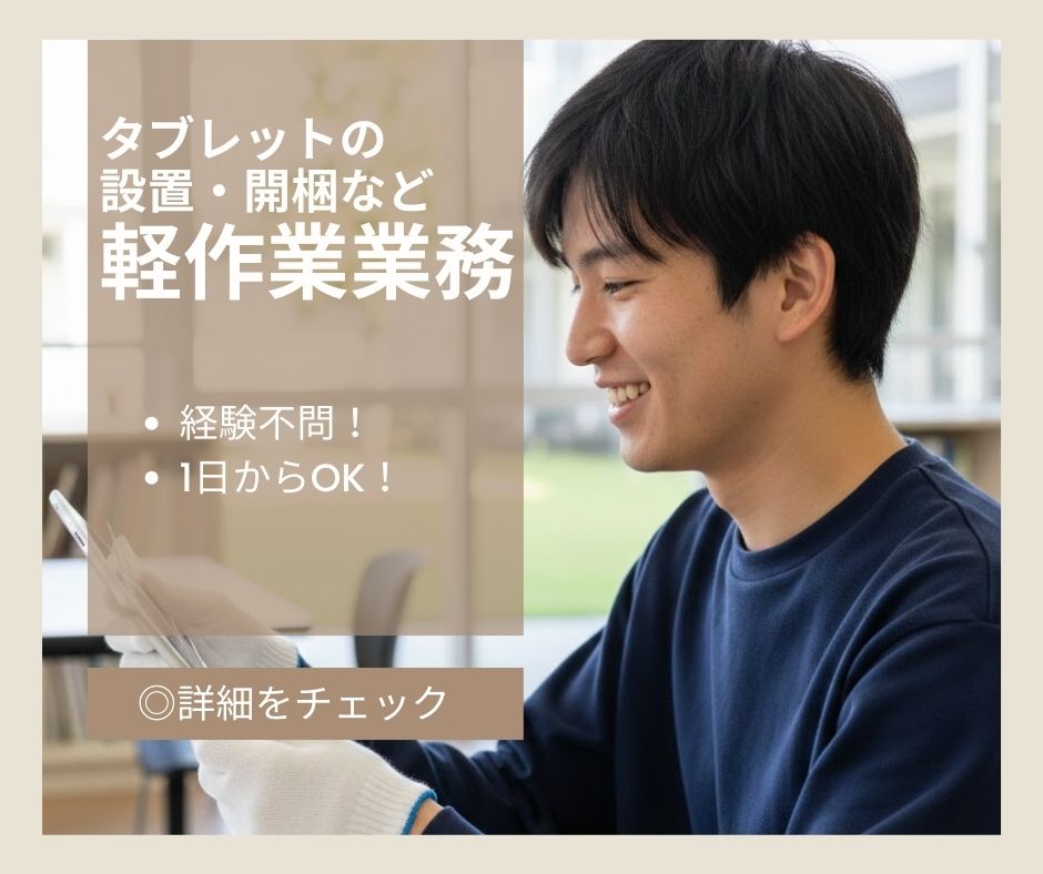 【時給1150円+交通費】タブレットの設置・開梱