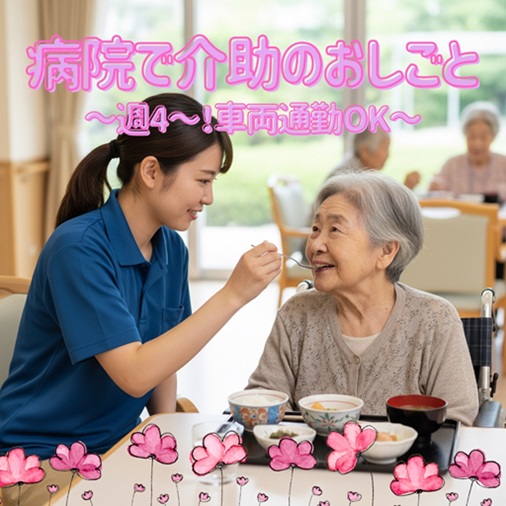 キレイな病院内で、食事の準備や入職の補助など、介助がメインのお仕事!