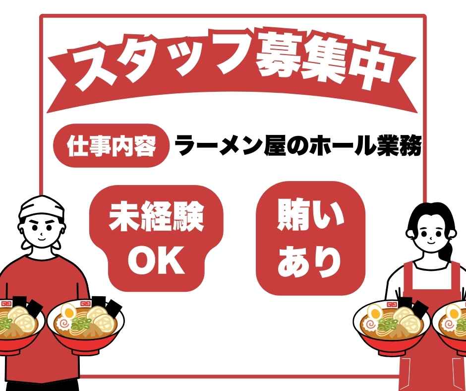 ♪♪ライフスタイルに合わせて働ける♪ 学業・子育て・副業OKの有名ラーメン店スタッフ募集♪♪