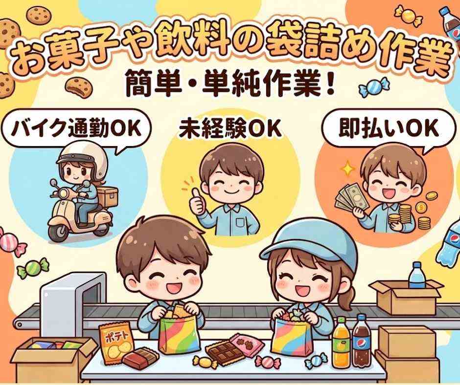 即払可!時給1200円+交!お菓子や飲料の袋詰め作業