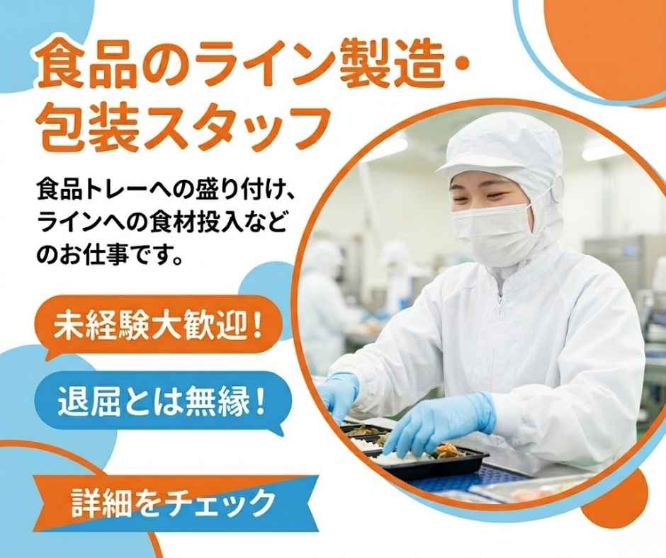 【西区】未経験者歓迎!食品のライン製造・包装のお手伝い