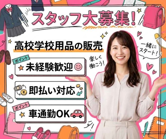 【八幡東区清田】即払OK★時給1200円☆学校用品の販売補助