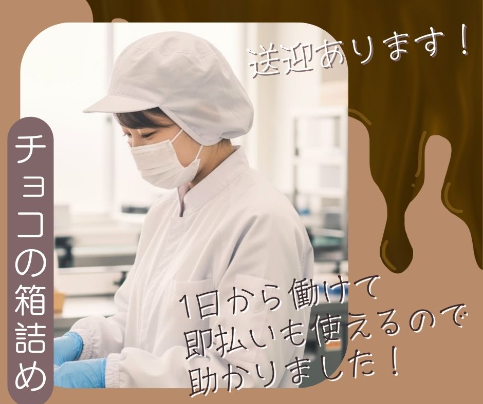 札幌送迎:【夕張】チョコレート箱詰め♪日給10,100円/即払可
