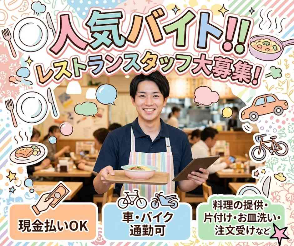 【当日現金】高時給! 簡単ホールスタッフ業務