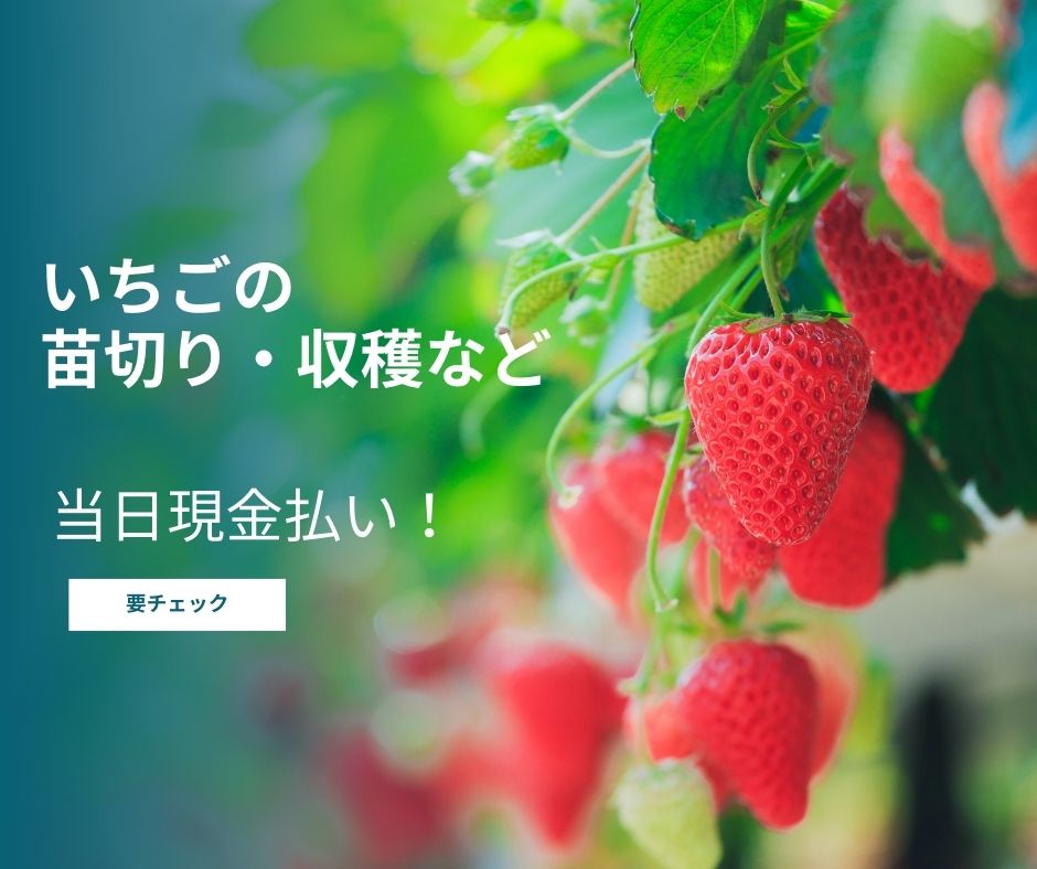 いちごの苗切り・収穫などの作業等をお願いします!ハウス内での作業となります。