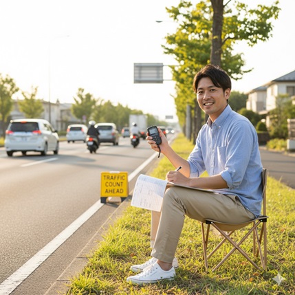 !車輌・歩行者・自転車の通行台数カウント業務!